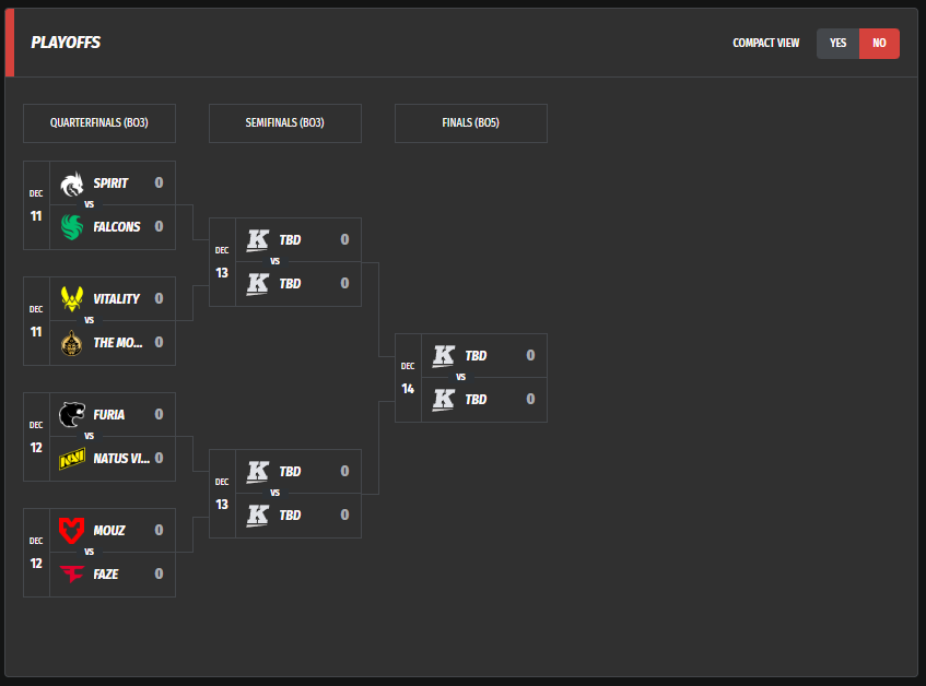 Como resultado da fase, as seguintes equipes avançaram para os playoffs: Spirit, FURIA, MOUZ, Vitality, The MongolZ, FaZe, Natus Vincere e Falcons. Elas continuarão a lutar pelo título e pela maior parte do prêmio de $1.250.000 na fase final, que ocorrerá de 11 a 14 de dezembro no MVM Dome.